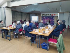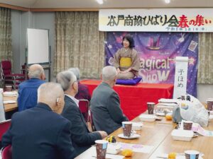 今年も「ひばり会春の集い」が開催されました🌸 2026.3.7 3月1日(日)「谷戸イチョウホール」で65歳以上の会員による懇親会『ひばり会春の集い』が開催されました。 加藤副理事長による開会の挨拶のあと、長年、この会を主催していただいた野口忠さんが今回をもって引退ということで、ご挨拶をいただきました。長い間たいへんお疲れ様でした。 プログラム最初は「ふれあい通り名店街」の星洋子様によるミニ講演会「バトンを繋ぐ」。 ひばりが丘団地の商店街で生まれ育った星さんに商店街の移り変わりとこれからを熱く語っていただきました。 その後、「保谷落語愛好会」による落語2題、「西東京マジッククラブ」さんによるマジックと続き、最後に恒例のビンゴ大会で大いに盛り上がり、和やかな春の集いとなりました。 第2回ひばりフェスタ 大盛況でした! 前の記事